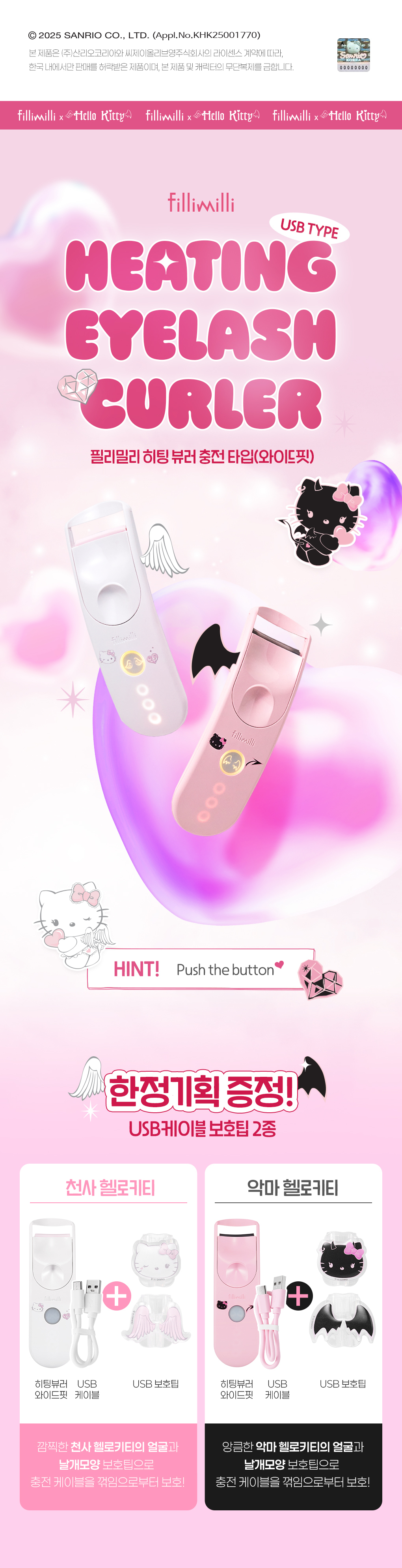〈現 貨〉Fillimilli x Hello Kitty Angel Devil Edition - Heating Eyelash Curler (Wide Fit)