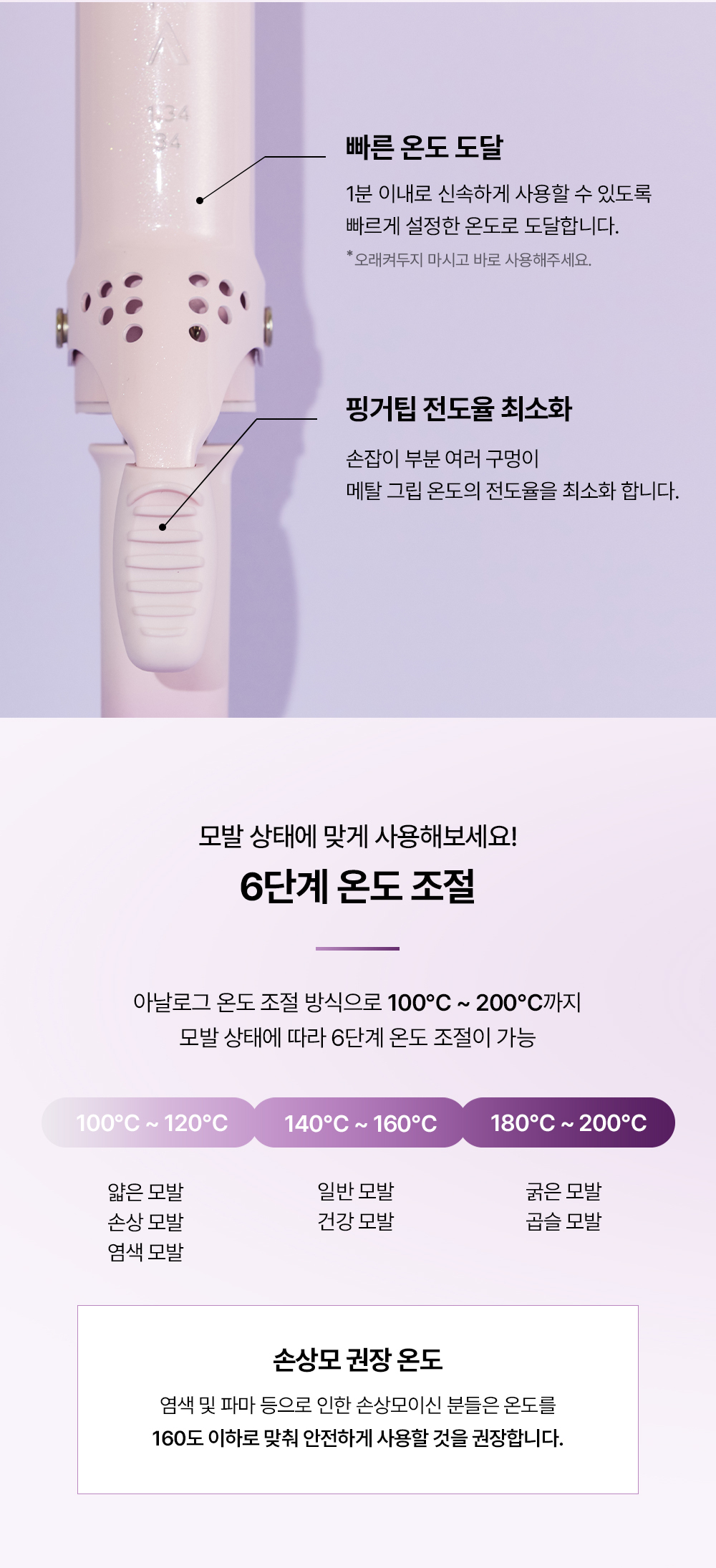☑ 鉻製成加熱板,加快加熱速度,也減少頭髮受損